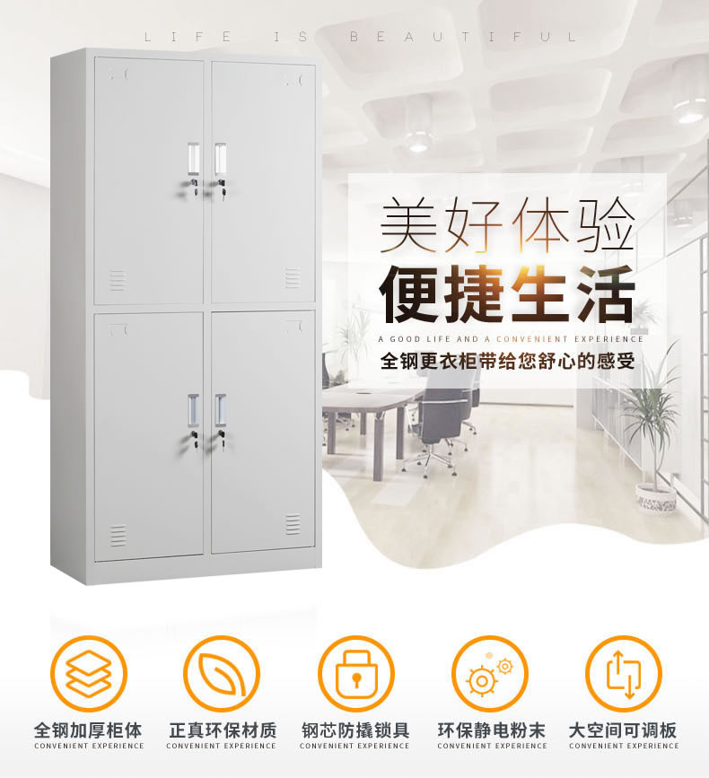 更衣柜是指存放衣物的柜子,是人们生活中必不可少的用品,广泛应用于家庭、公共事业单位、办公场所、学校等地,现代的更衣柜由钢制,木质,塑料等制成。